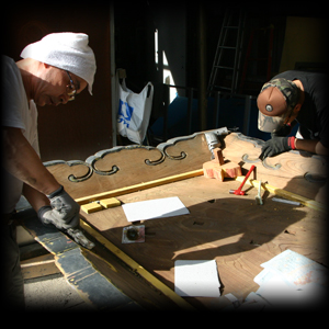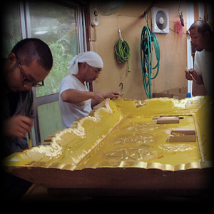 拝殿修復金粉布仕上げ